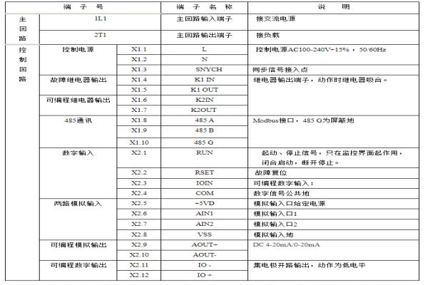 了解詳情 +CMC-L系列數碼型軟起動器有12個外引控制端子,為用戶實現外部信號控制、遠程控制及系統控制提供方便。端子號端子名稱說明主回路1L1、3L2、5L3交流電源輸入端子接三相交流電源2...